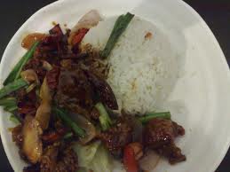 Dice chicken into cubes …then heat cooking oil (a reasonable quantity) in a nice looking WOK, or Frying pan…