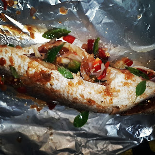 Wash fish thoroughly and line the 2 sides with a sharp knife..do not cut. This is just to ensure the fish has a bit of opening for your spices to penetrate through.