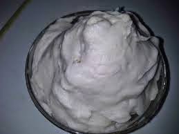 When its done, peel baby cocoyams and pound into mash with mortar and pestle, set aside in a warm place to keep it from getting cold.
